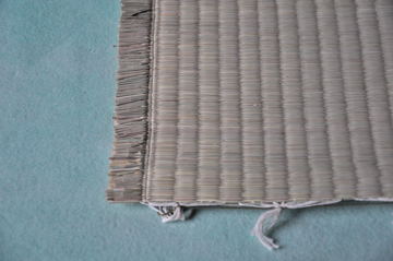 イ草を織る経糸に綿糸を使用したもので、上記の一般的な表と比べ、使用している草の長さが短く厚みも薄くなります。 |