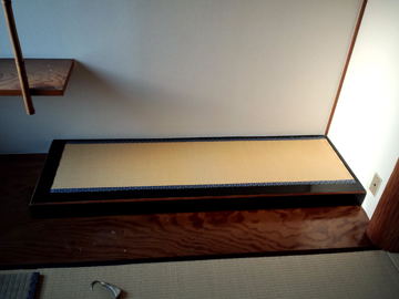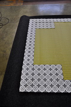 琉球畳通常の目積表ではなく、琉球表(青表)を使用した縁なし畳です。こちらが琉球畳といわれるものになります。 |