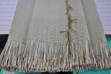 イ草を織る経糸に綿糸を使用したもので、上記の一般的な表と比べ、使用している草の長さが短く厚みも薄くなります。 |